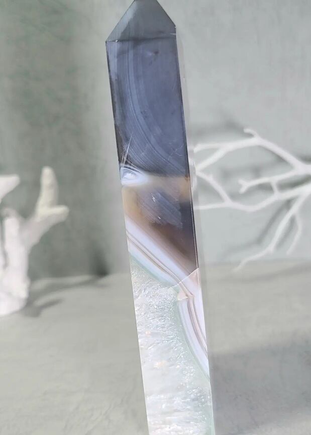 美しいアゲートが透明の水晶を覆い、