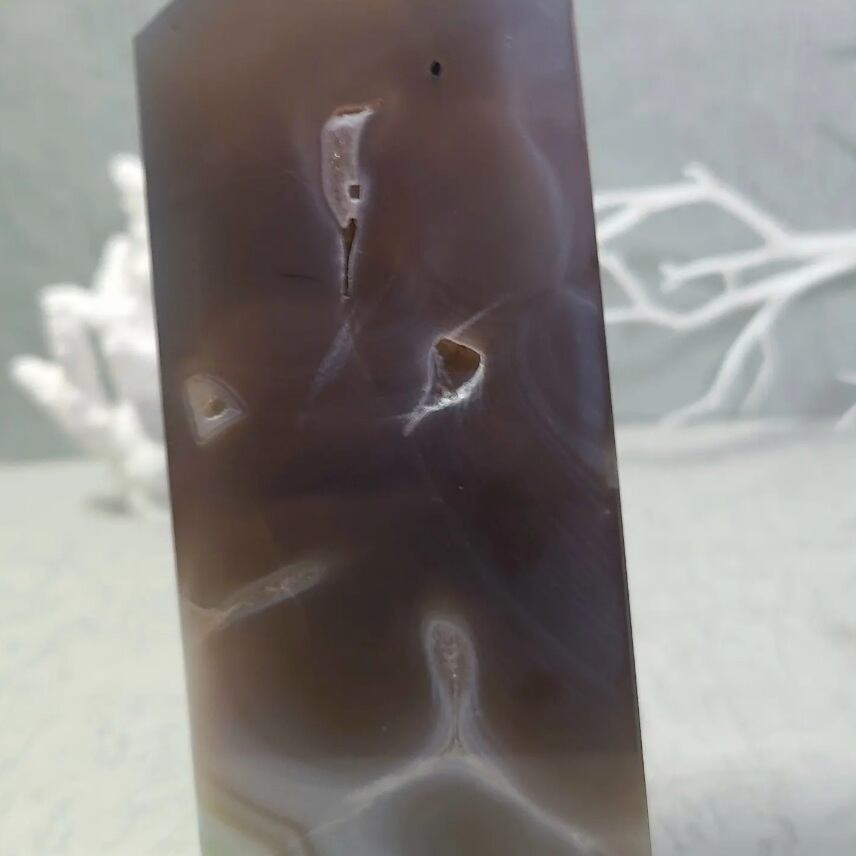 アゲートは一般的にグラウディング力が強く、情緒的、肉体的なバランスを強化し、身体的エネルギーのバランスを安定させる作用がある石で、現実的な解決へと導いていきます。