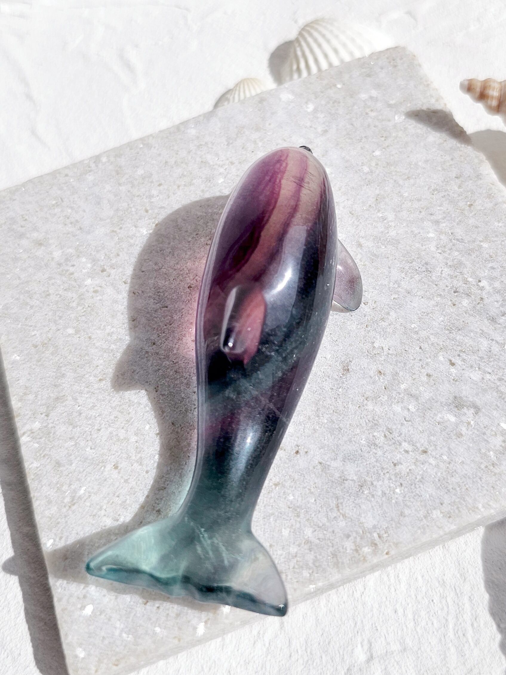 しと集中力を与えてくれ、ストレスの解放にも良いとされるフローライトでつくられたドルフィン☺